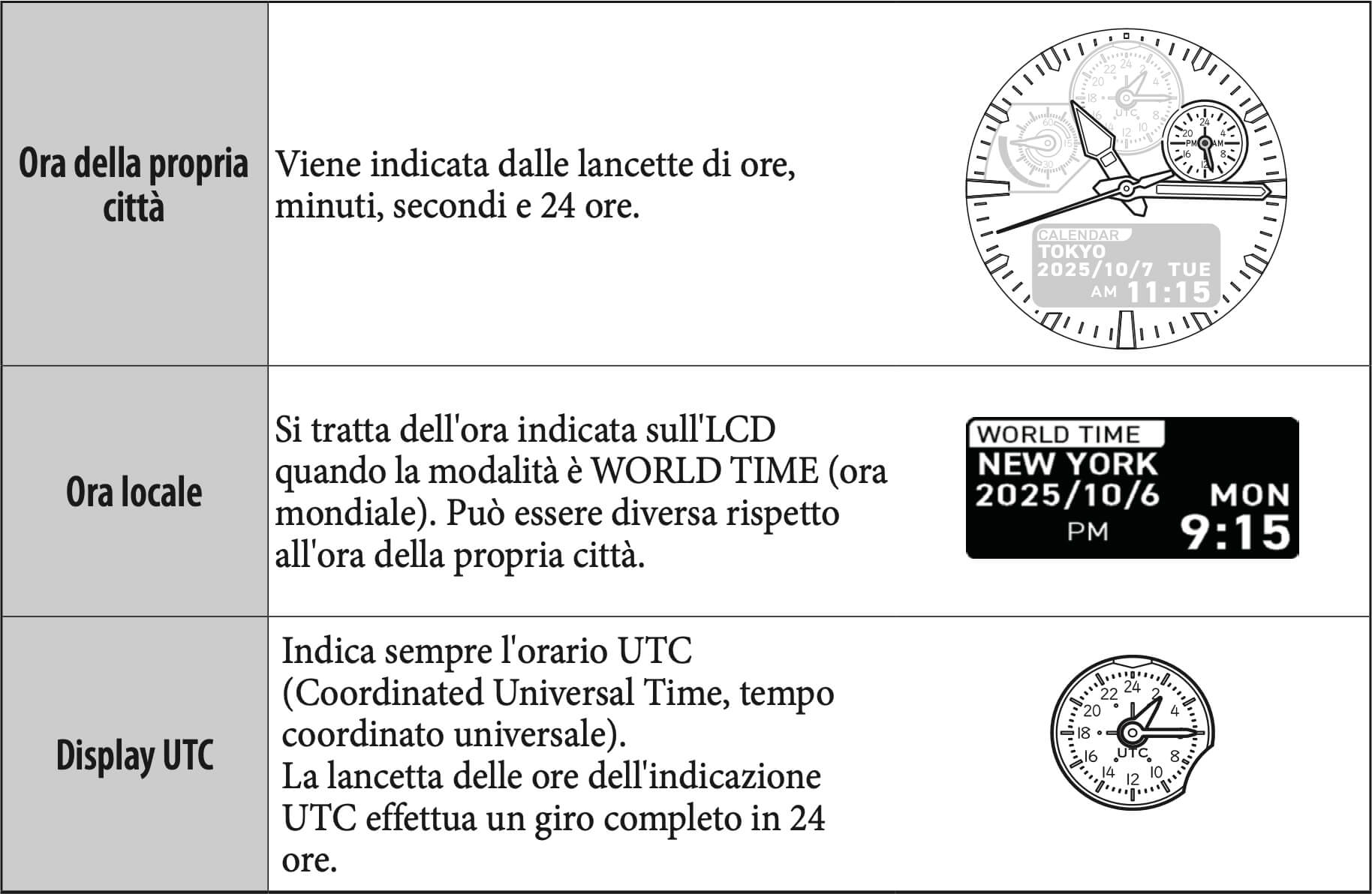 Le lancette tornano all'orario corrente. L'indicazione UTC riparte per mostrare l'orario UTC.