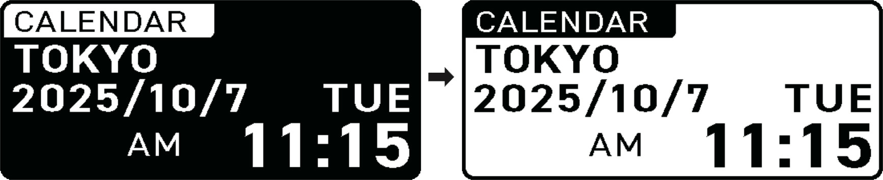 Ad es., per cambiare la modalità da CALENDAR (ora e calendario) a TIMER (timer)