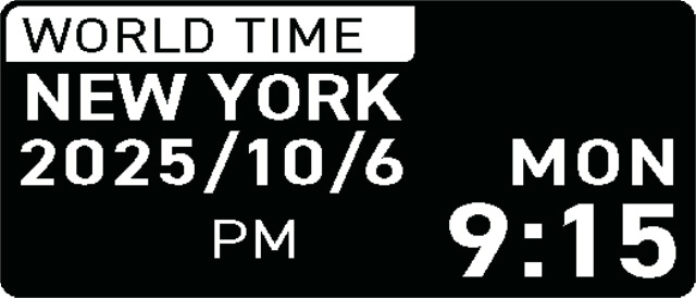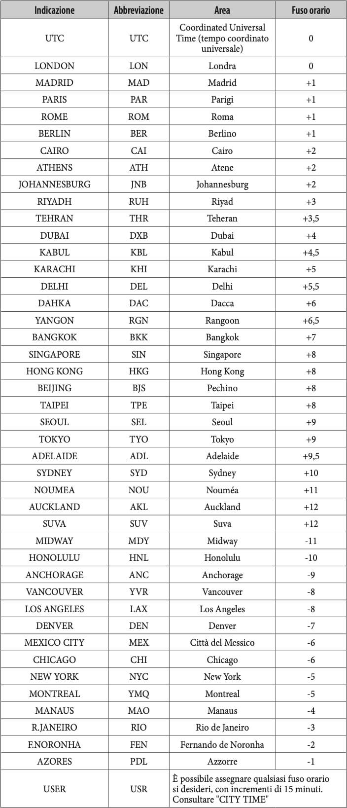 Indica l'ora mondiale, con la possibilità di scegliere tra 26 fusi orari. |