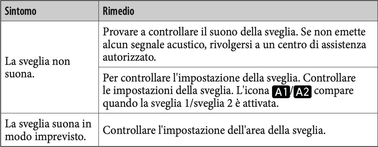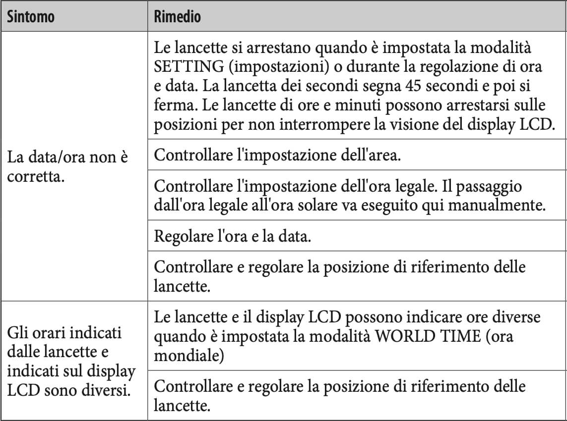 Se l'orologio continua ad avere problemi anche dopo aver tentato le seguenti soluzioni, rivolgersi a un centro di assistenza autorizzato.