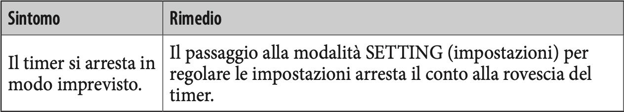 È possibile impostare il conto alla rovescia fino a 99 minuti e 59 secondi, con incrementi di 1 secondo.