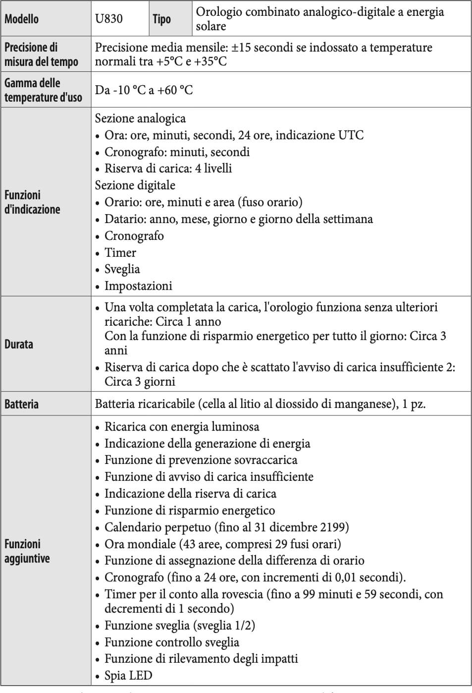 Sebbene sia costruito in modo tale da non potere funzionare con un altro tipo di accumulatore, qualora se ne installi uno convenzionale o comunque di altro tipo in fase di ricarica esso potrebbe surriscaldarsi ed eventualmente rompersi. Di conseguenza l'orologio si potrebbe danneggiare e l'utilizzatore subire una lesione. Si raccomanda pertanto di prestare grande attenzione affinché l'accumulatore in uso sia effettivamente quella del tipo specificato.